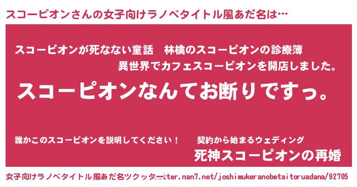 | ヘコむあだ名 | 『スコーピオン(苦笑)』『スコにゅー』 |