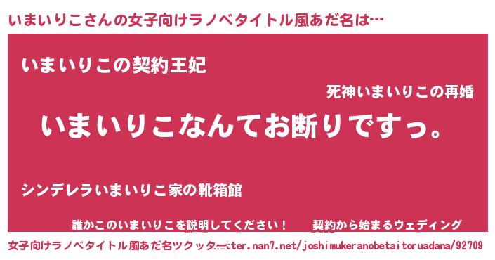 | ヘコむあだ名 | 『いまいりこ(笑)』『いまにゅー』 |