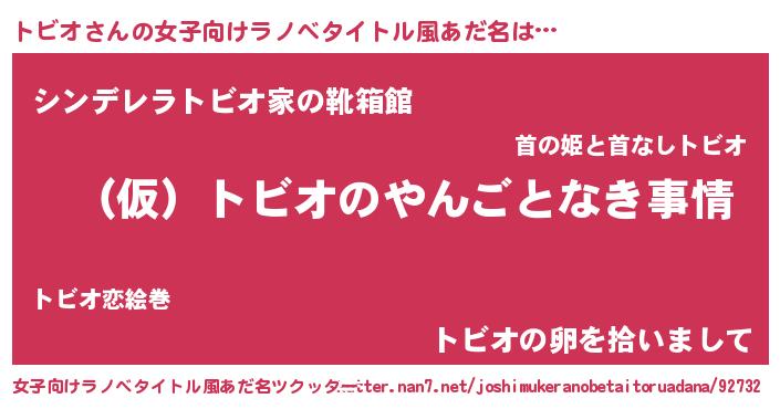 | ヒーロー風カッコイイあだ名 | 『スーパートビオ』『暗黒騎士トビ』 |