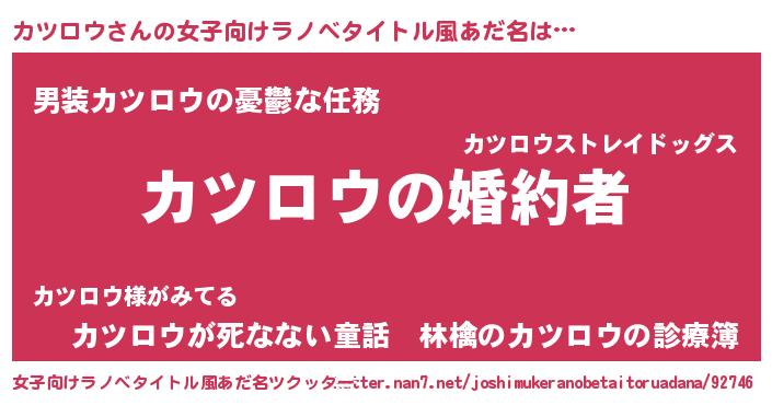 | ファンタジー風あだ名 | 『エターナルカツロウー』『ゼカツトゥ』 |
