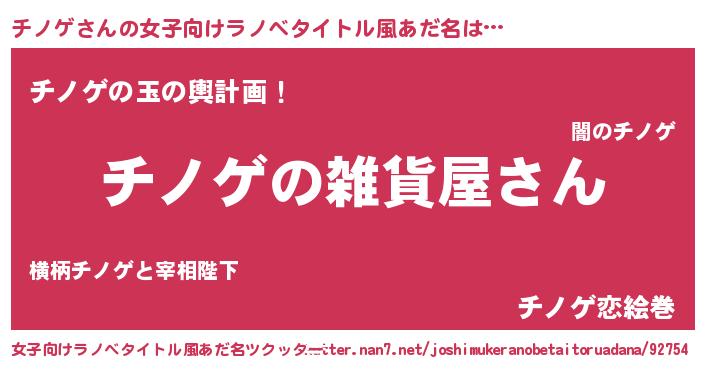 | 意味不明あだ名 | 『チノゲフォーエバー』『自称チノゲ』 |