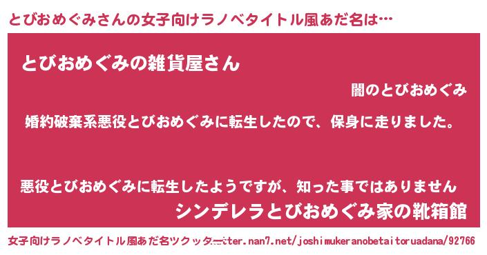| 男性向けラノベタイトル風あだ名 | 『転生したらとびおめぐみだった件』 |