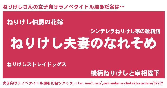 | 男性向けラノベタイトル風あだ名 | 『おまえをオタクにしてやるから、俺をねりけしにしてくれ! 』 |