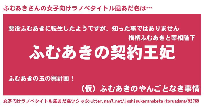 | 男性向けラノベタイトル風あだ名 | 『誰もが恐れるあのふむあきが、ぼくの専属メイドになるようです。』 |