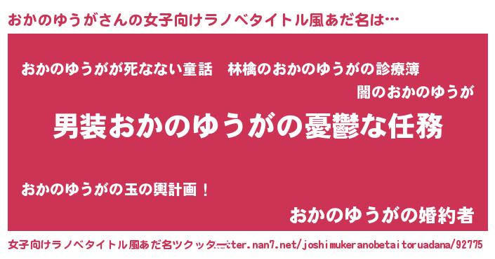 | ヒーロー風カッコイイあだ名 | 『仮面オカダー』『究極戦士オカノユウガ』 |