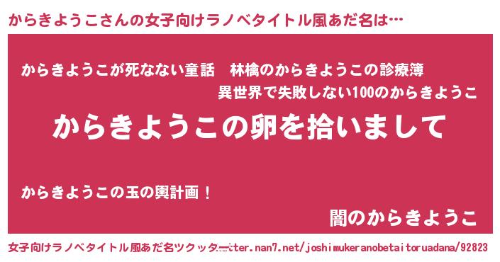 | ヘコむあだ名 | 『からぷりん』『からきようこ(小並感)』 |