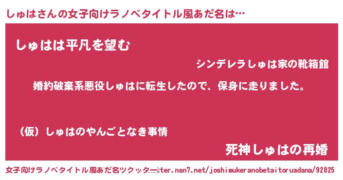 | 胡散臭い通販商品みたいなあだ名 | 『信頼と実績のサプリメント…その名も「しゅは」』 |