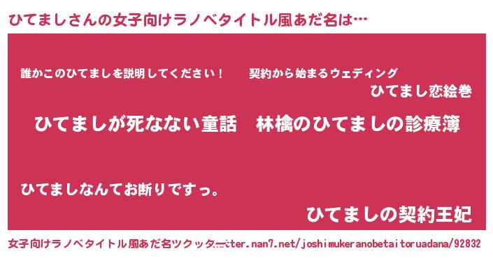 | 男性向けラノベタイトル風あだ名 | 『魔弾の王とひてまし』 |