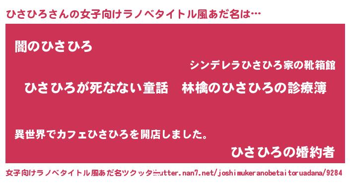 | 男性向けラノベタイトル風あだ名 | 『魔弾の王とひさひろ』『緋弾のヒサヒロ』 |