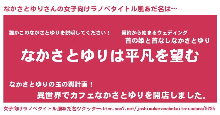 | 男性向けラノベタイトル風あだ名 | 『ダンジョンになかさとゆりを求めるのは間違っているだろうか』 |