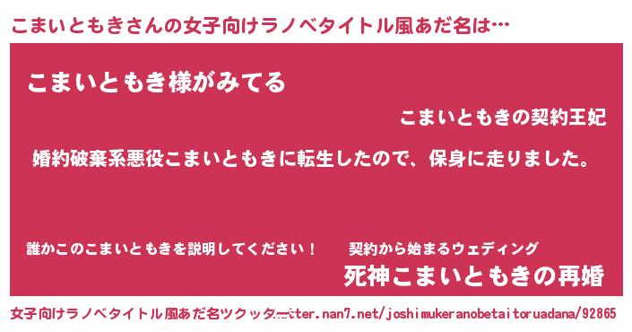 | 男性向けラノベタイトル風あだ名 | 『転生したらこまいともきだった件』 |