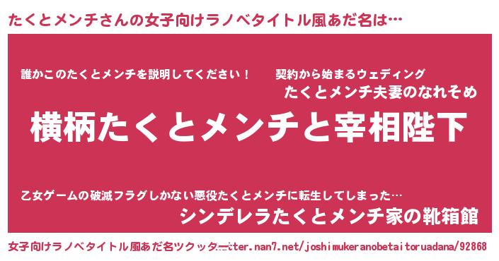 | 胡散臭い通販商品みたいなあだ名 | 『億万長者になれる霊験あらたかなお札…その名も「たくとメンチ」』 |