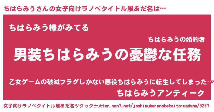 | 男性向けラノベタイトル風あだ名 | 『うちのちはらみうが世界を掌握している!』 |