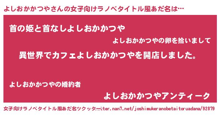 | 男性向けラノベタイトル風あだ名 | 『誰もが恐れるあのよしおかかつやが、ぼくの専属メイドになるようです。』 |