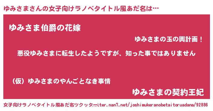 | 意味不明あだ名 | 『住所不定無職ゆみさま(93歳)』 |