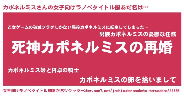 | 男性向けラノベタイトル風あだ名 | 『ノーゲーム・ノーカポネルミス』 |