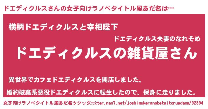 | 男性向けラノベタイトル風あだ名 | 『やはりドエディクルスの青春ラブコメはまちがっている 』 |