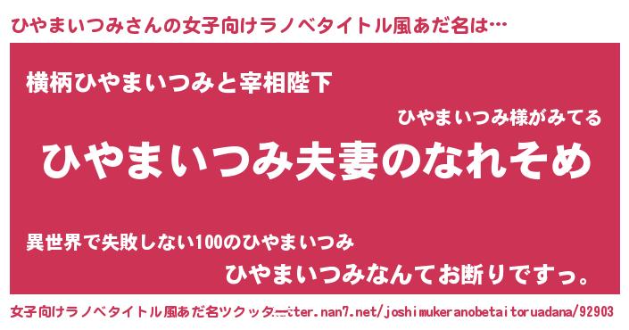 | 男性向けラノベタイトル風あだ名 | 『おまえをオタクにしてやるから、俺をひやまいつみにしてくれ! 』 |