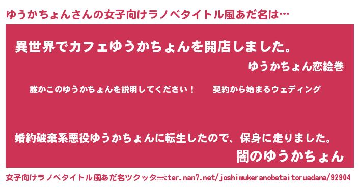 | 胡散臭い通販商品みたいなあだ名 | 『億万長者になれる水晶球…その名も「ゆうかちょん」』 |