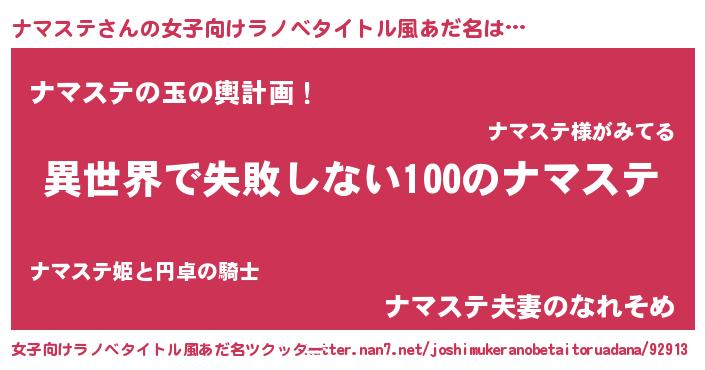 | ヒーロー風カッコイイあだ名 | 『ネオナマステ』『天空の使者ナマステ』 |