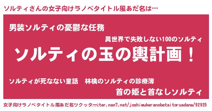 | 恥ずかしいあだ名 | 『ソルちん』『ソルリンリン』 |