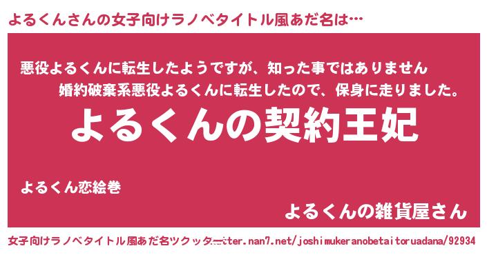 | 男性向けラノベタイトル風あだ名 | 『誰もが恐れるあのよるくんが、ぼくの専属メイドになるようです。』 |