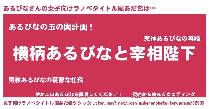 | 男性向けラノベタイトル風あだ名 | 『あるびなに滅ぼされるだけの簡単なお仕事です』 |