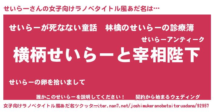| 意味不明あだ名 | 『住所不定無職せいらー(11歳)』 |