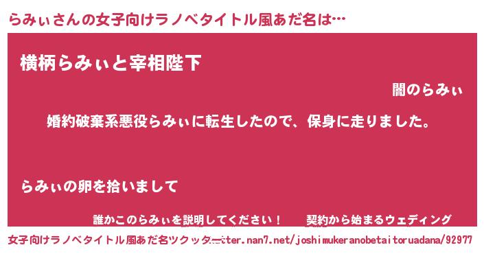 | 胡散臭い通販商品みたいなあだ名 | 『必ず成功する水晶球…その名も「らみぃ」』 |