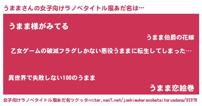 | 男性向けラノベタイトル風あだ名 | 『魔弾の王とうまま』 |