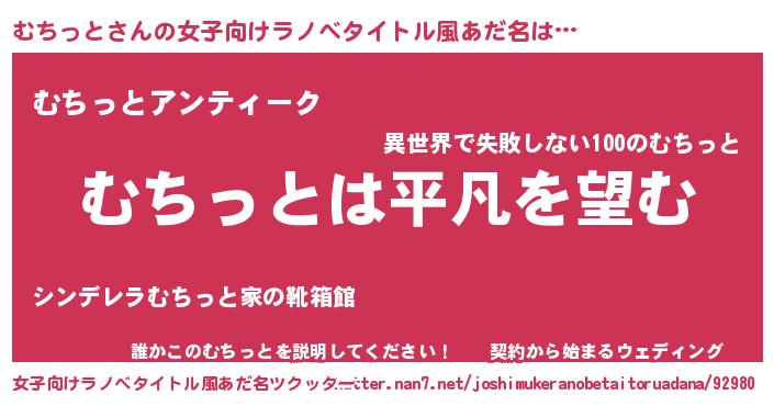 | 男性向けラノベタイトル風あだ名 | 『ダンジョンにむちっとを求めるのは間違っているだろうか』 |
