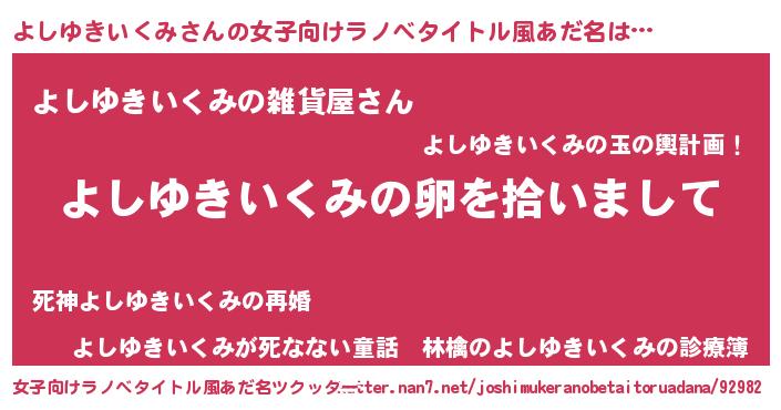| 胡散臭い通販商品みたいなあだ名 | 『伝統あるサプリメント…その名も「よしゆきいくみ」』 |
