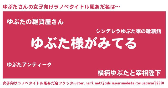 | 男性向けラノベタイトル風あだ名 | 『ゆぶたの嫁は女の子じゃないと思った?』 |