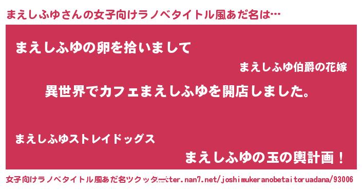 | 胡散臭い通販商品みたいなあだ名 | 『前代未聞の健康食品…その名も「まえしふゆ」』 |