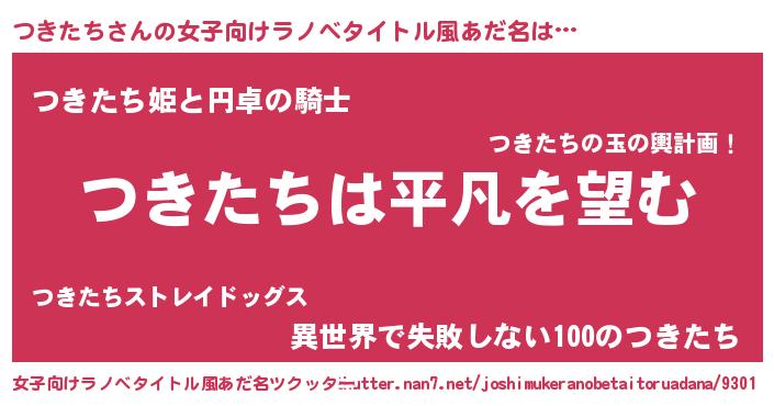 | ヒーロー風カッコイイあだ名 | 『暗黒騎士ツキ』『スーパーツキタチ』 |