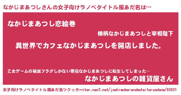 | 男性向けラノベタイトル風あだ名 | 『誰もが恐れるあのなかじまあつしが、ぼくの専属メイドになるようです。』 |