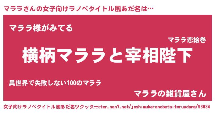 | 男性向けラノベタイトル風あだ名 | 『マララに滅ぼされるだけの簡単なお仕事です』 |