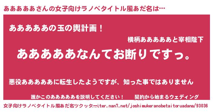 | 男性向けラノベタイトル風あだ名 | 『魔法科高校のあああああ』 |