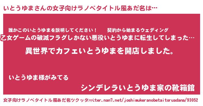| 胡散臭い通販商品みたいなあだ名 | 『前代未聞の健康食品…その名も「いとうゆま」』 |
