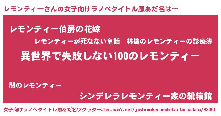 | 胡散臭い通販商品みたいなあだ名 | 『絶対に幸福をもたらす水素水…その名も「レモンティー」』 |