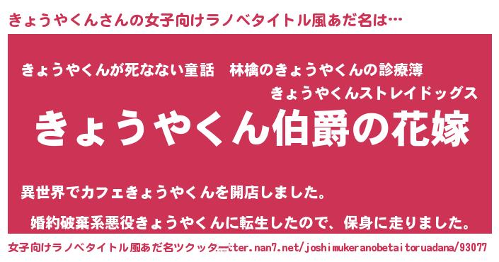 | 男性向けラノベタイトル風あだ名 | 『やはりきょうやくんの青春ラブコメはまちがっている 』 |
