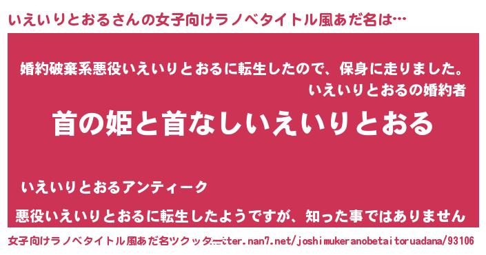 | 男性向けラノベタイトル風あだ名 | 『はたらくいえいりとおるさま!』 |
