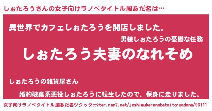 | 胡散臭い通販商品みたいなあだ名 | 『100人中100人が認めたイリジウム磁石…その名も「しぉたろう」』 |
