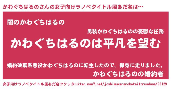 | 男性向けラノベタイトル風あだ名 | 『ダンジョンにかわぐちはるのを求めるのは間違っているだろうか』 |