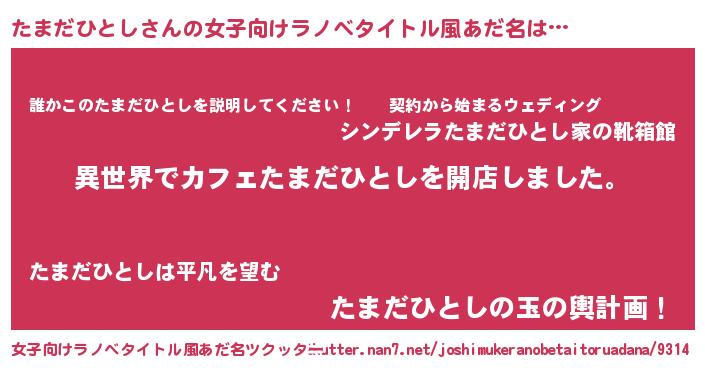 | 胡散臭い通販商品みたいなあだ名 | 『前代未聞の水素水…その名も「たまだひとし」』 |