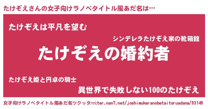 | ファンタジー風あだ名 | 『エターナルタケゾエー』『タケフェル』 |