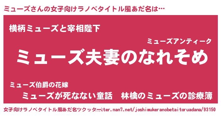 | 男性向けラノベタイトル風あだ名 | 『おまえをオタクにしてやるから、俺をミューズにしてくれ! 』 |