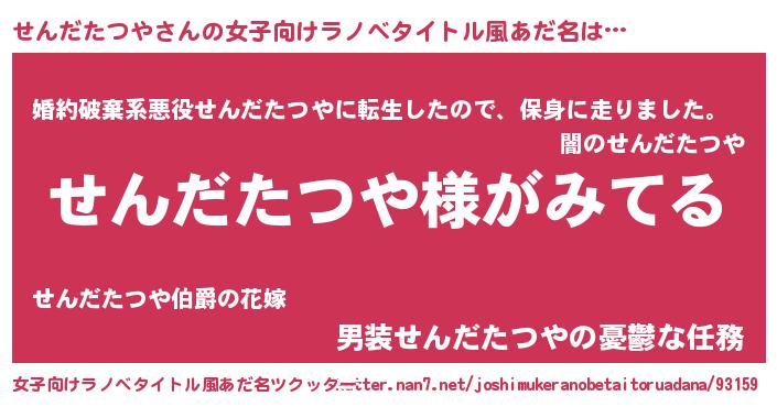| 男性向けラノベタイトル風あだ名 | 『せんだたつやの嫁は女の子じゃないと思った?』 |