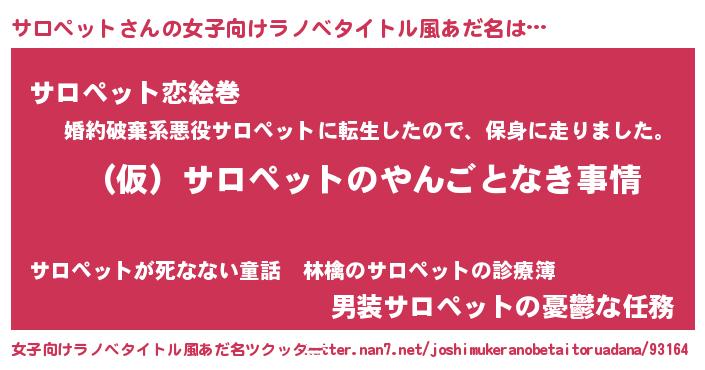 | 胡散臭い通販商品みたいなあだ名 | 『必ず成功するブレスレット…その名も「サロペット」』 |