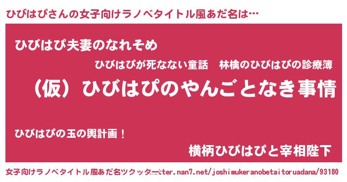| 男性向けラノベタイトル風あだ名 | 『ひびはぴの憂鬱』『魔弾の王とひびはぴ』 |